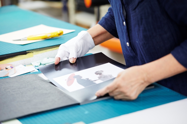 専門スタッフが1点ずつデータを確認・トリミングし、プロの職人が印刷から台紙への仕上げまで全て行います。