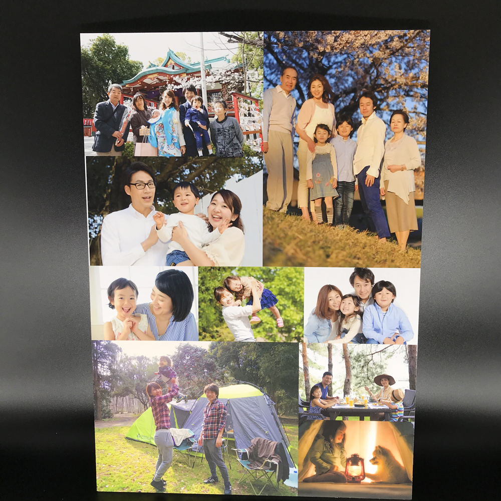 1枚の大きなメイン写真から、細かな思い出のカットまで、1〜12枚の間でお好きな枚数を選べます。