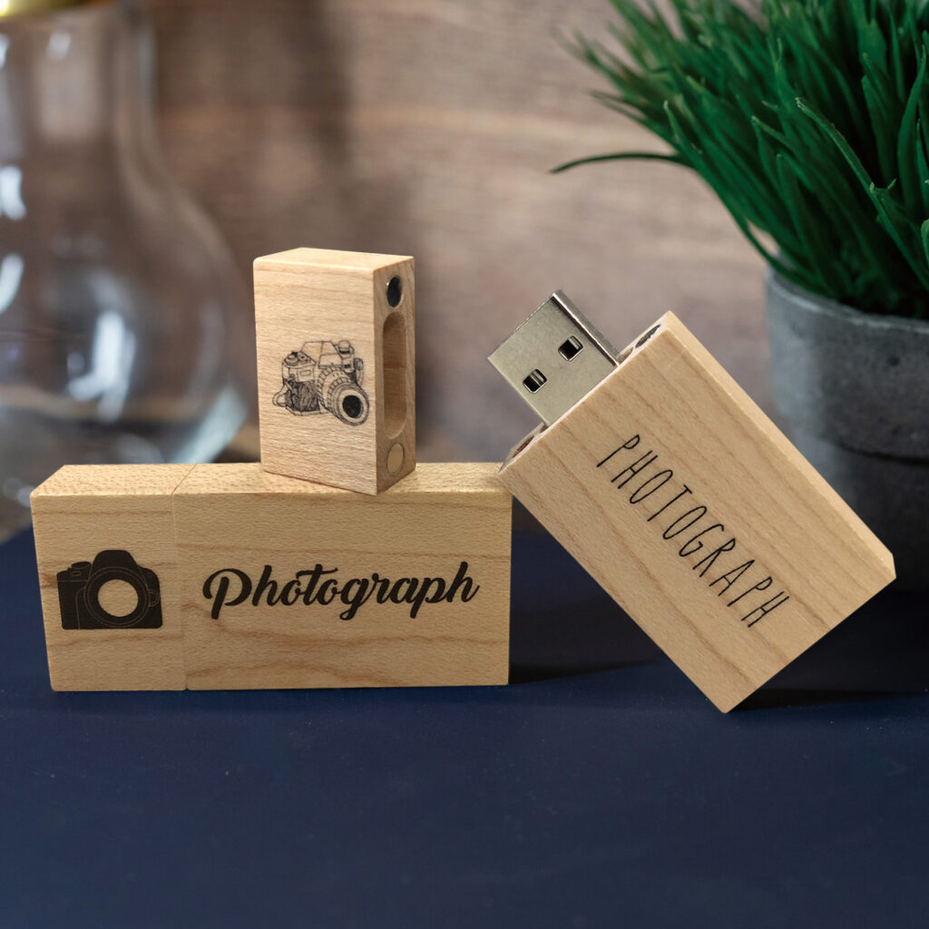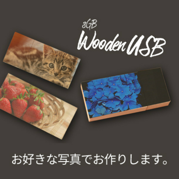 写真アルバム工房では、「USBメモリー」と「写真やデザインを印刷できる木製のカバー」を合体させた、世界に一つだけのオリジナル木製USBメモリーをご用意しております。