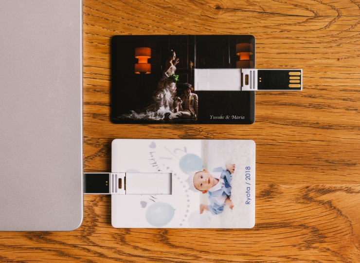 最大の特徴は、データを整理するだけでなく、USBメモリー表面に直接、思い出の写真やオリジナルデザインをプリントできることです。