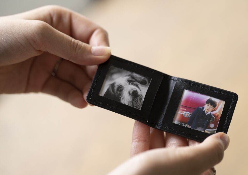写真を気軽に持ち運べる便利なフォトアイテムです。差し込む写真は、4㎝×3㎝の履歴書などに仕様するサイズのプリントです。コンビニなどで印刷が可能なので気軽に手作りしていただけます♪