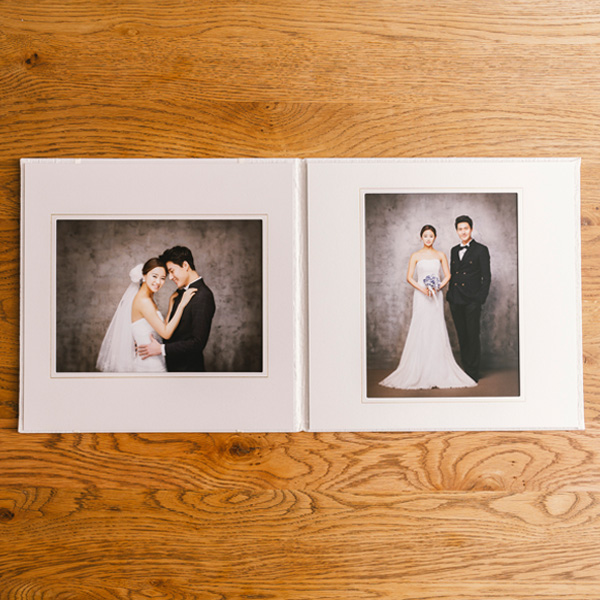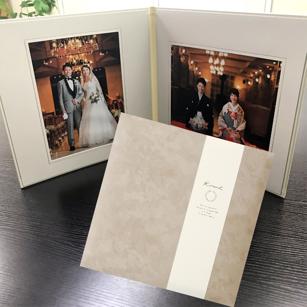 写真台紙の中でも最も選ばれたのは、シンプルな色味の【アンジュ・ホワイト】6つ切2面でした。
