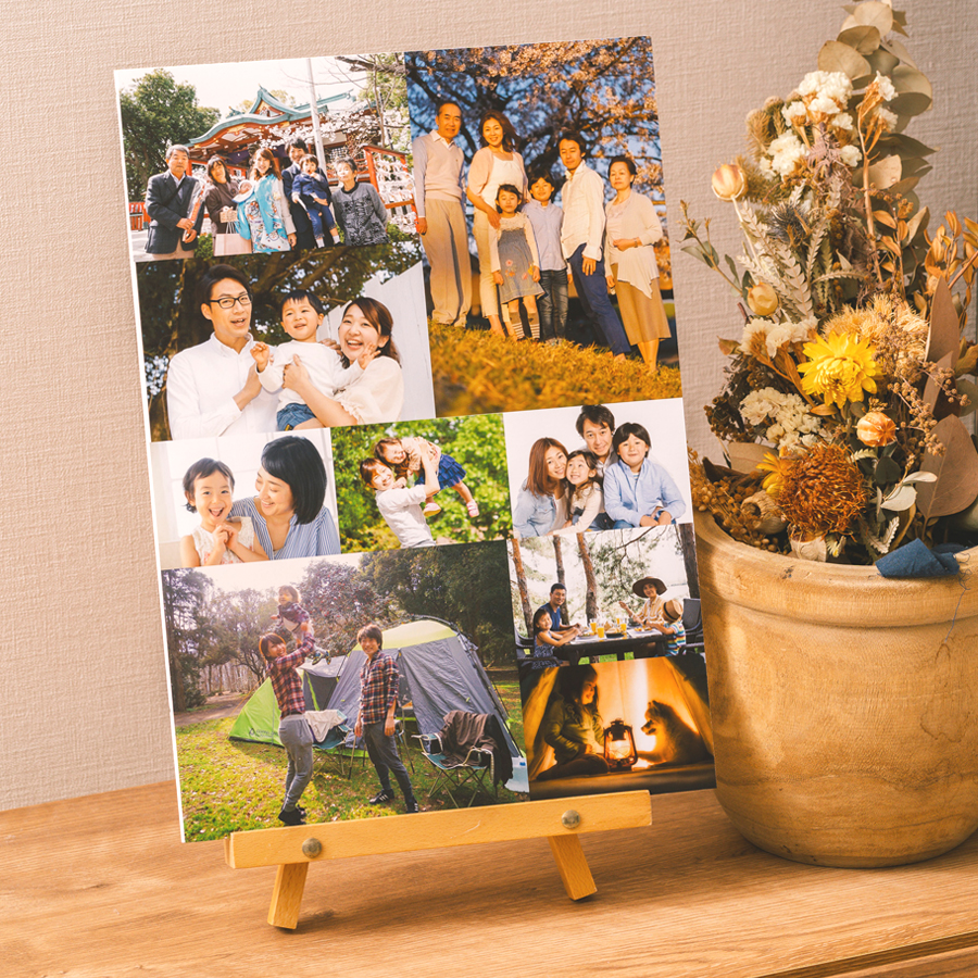 おじいちゃんおばあちゃんへプレゼント品として、昔から今までの写真を組み合わせて1枚にぎゅっとまとめた「成長の軌跡」パネルを作成する依頼が多かったです。家族旅行の写真をまとめたパネルを作る依頼も多く、様々な活用をいただきました。