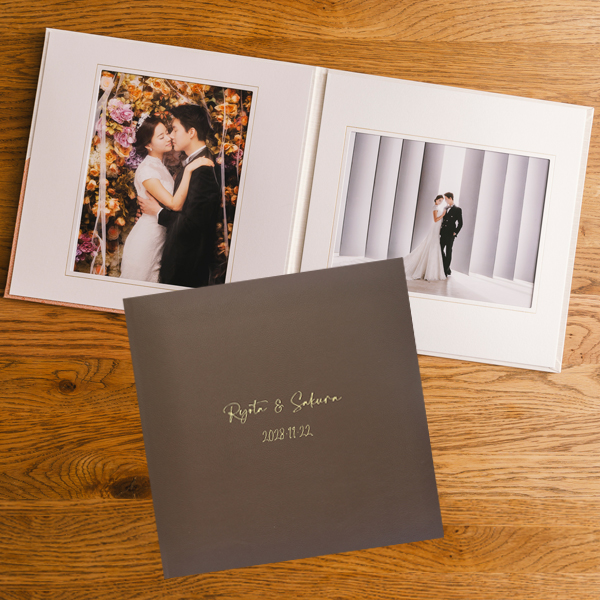 表紙にはお名前や記念日、イベント名を箔押しで入れられるため、世界で一つの特別な一冊としてお作りすることができます。