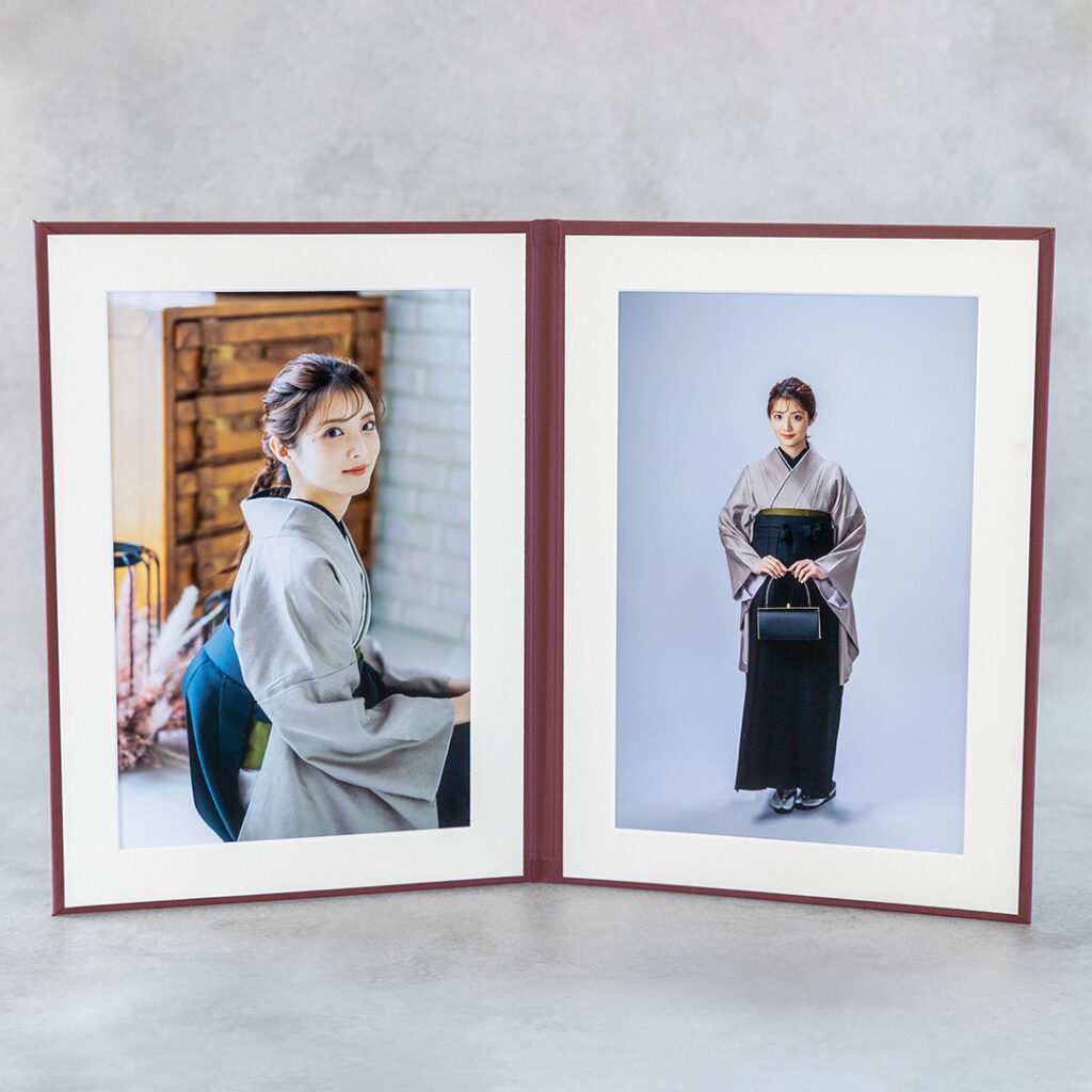 ・写真台紙 プリント印刷付き 仕上げ【凛・エンジ】A4 2面 卒業 記念写真 ZDR2