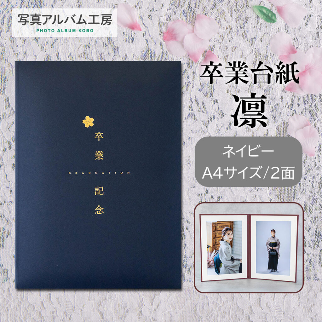 ・写真台紙 プリント印刷付き 仕上げ【凛・ネイビー】A4 2面 卒業 記念写真 ZDR1