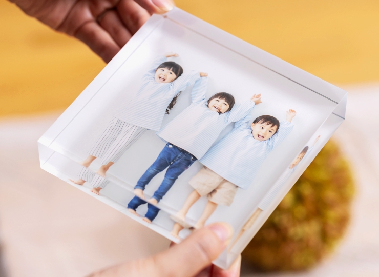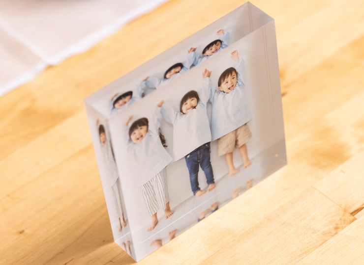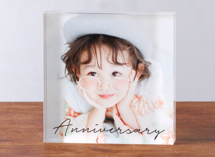 入園・入学シーンのおすすめは、こちらの「アクリルフォトブロック」。まるでガラスのオブジェのような美しい透明感で写真を彩ります♪
