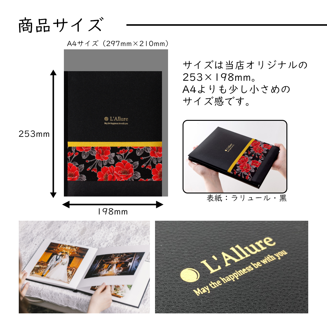 フォト(写真)アルバム[253×198mm] プロに作成依頼で手間いらず 4~20p対応 1p1カット掲載【アクリル表紙/梅市松ブラック】ZAL18