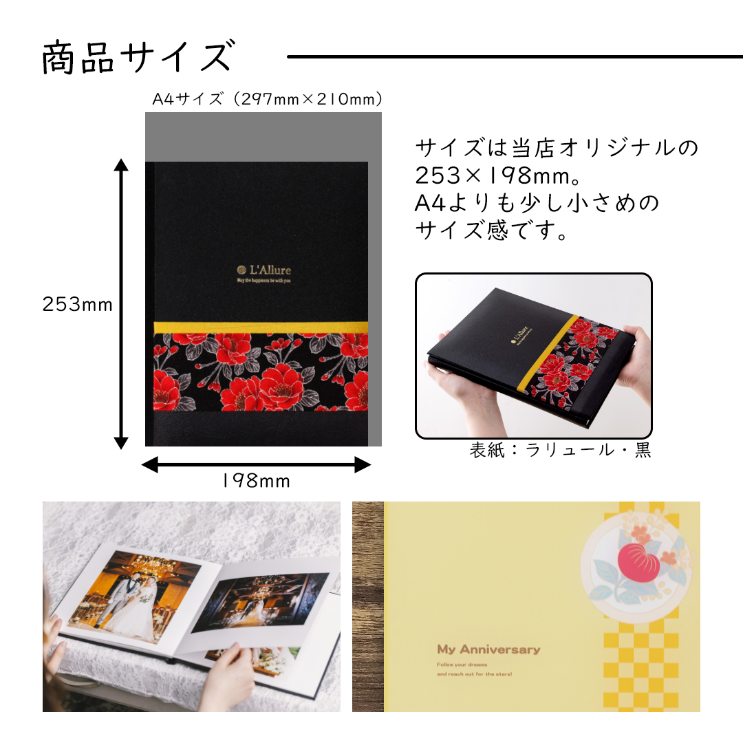 フォト(写真)アルバム[253×198mm] プロに作成依頼で手間いらず 4~20p対応 1p1カット掲載【アクリル表紙/梅市松ブラック】ZAL18