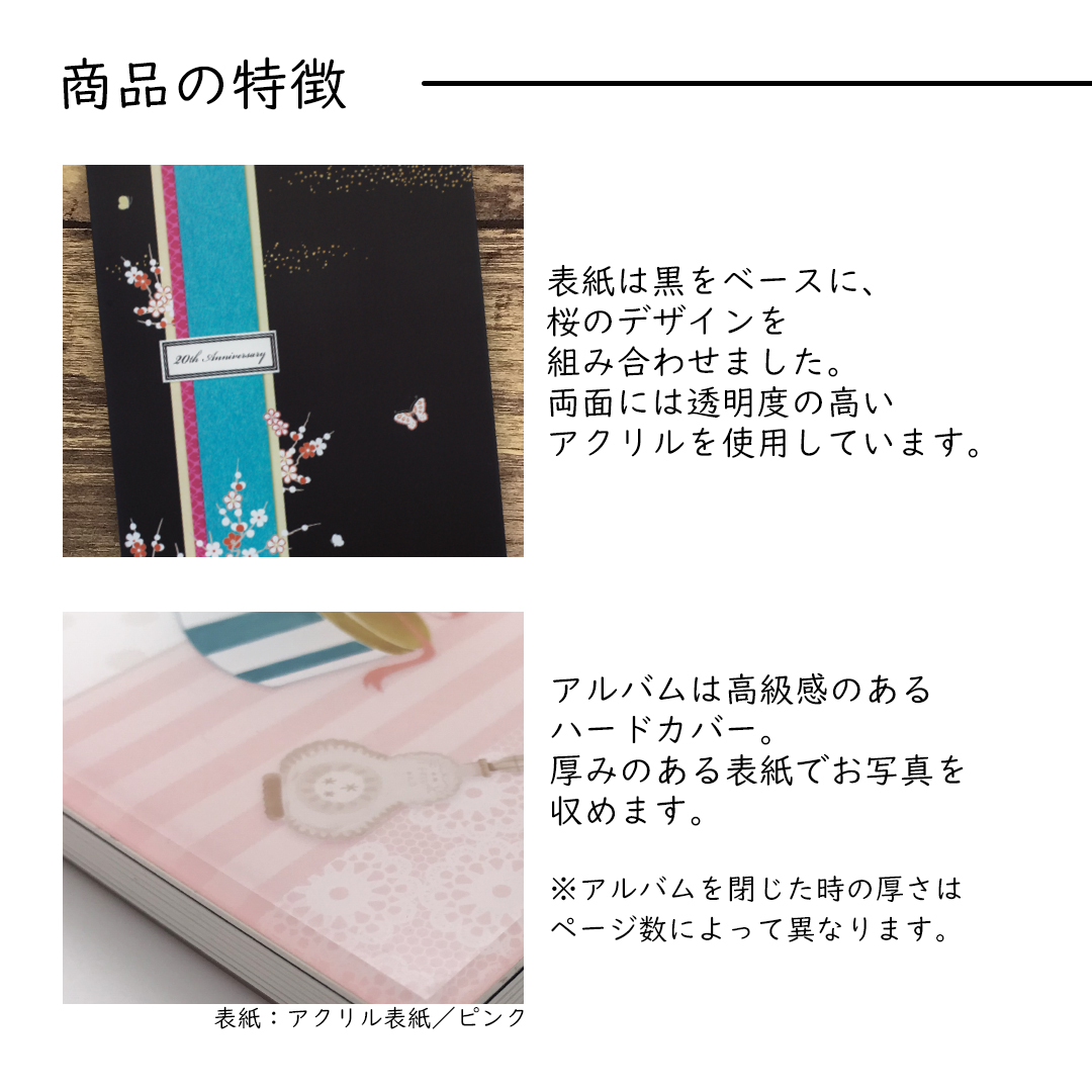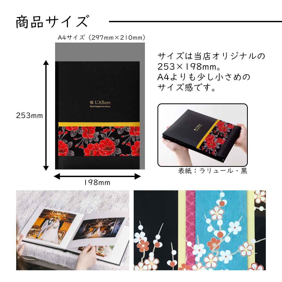 フォト(写真)アルバム[253×198mm] プロに作成依頼で手間いらず 4~20p対応 1p1カット掲載【アクリル表紙/梅市松ブラック】ZAL18