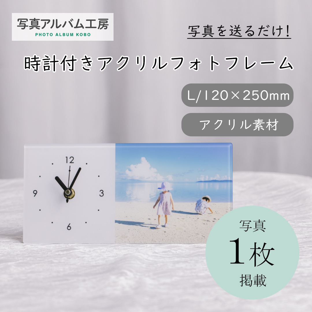 時計付きアクリルフォトフレーム 【L/120×250】 写真立て プリント込 写真データを送るだけ! Z19