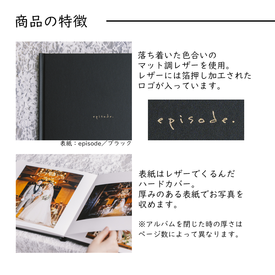 フォトアルバム 20ページ/写真40枚まで掲載[25cmスクエア] プロに作成依頼で手間いらず 【episode/ブラック】 ZAL24/20p-40c