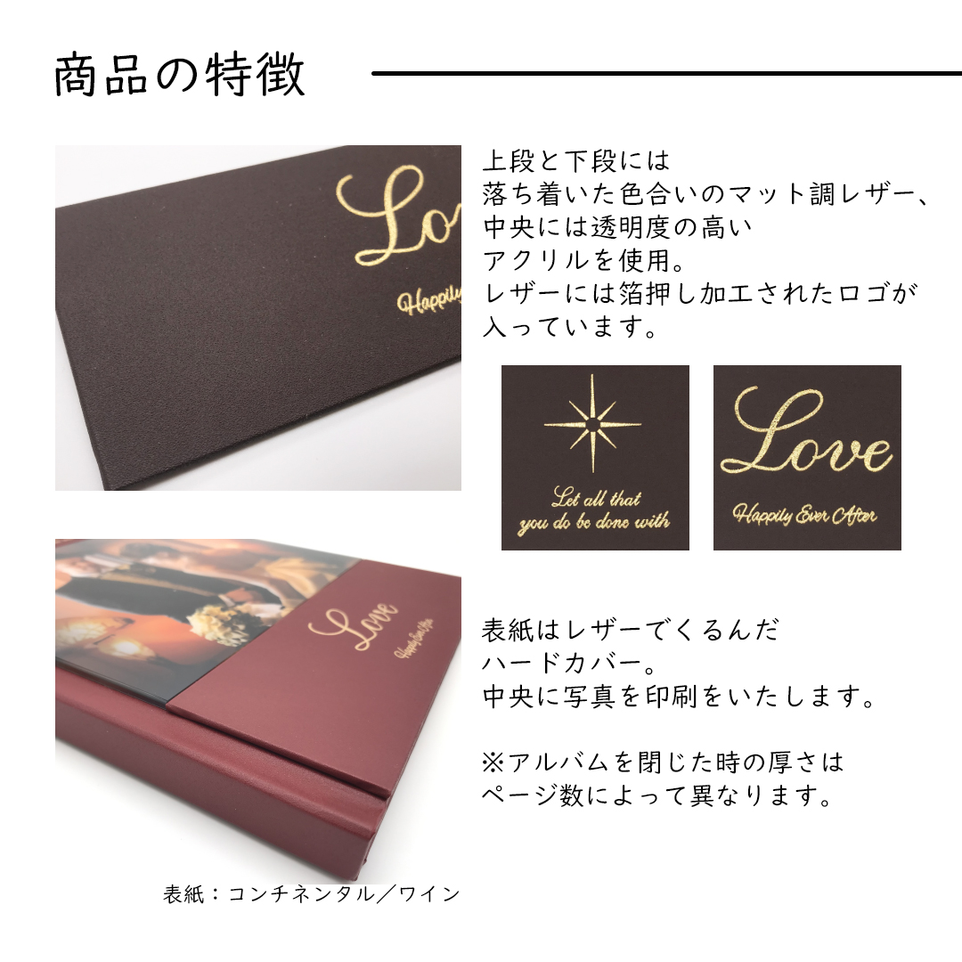 ●選ばれる理由:落ち着きのある色合いのレザーを使用して、シックな写真アルバムに仕上げており、年齢問わず選ばれている1冊。