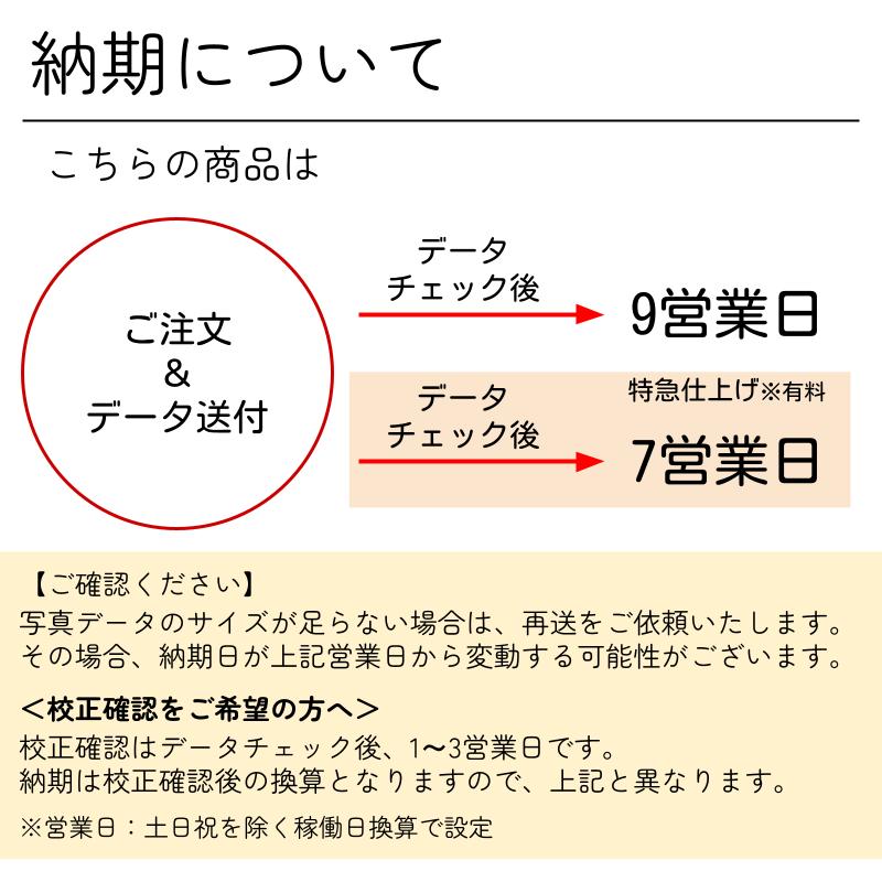 こちらの写真台紙は、お支払い・お写真データ送信後、9営業日前後での出荷となります。