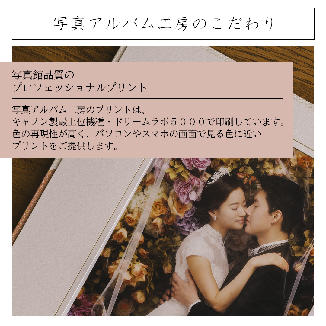 写真アルバム工房の写真台紙では、面倒なプリント出力&台紙仕上げをプロの技術者が代行し、完成品をお届けする仕上げサービスをご利用いただけます。写真データを送るだけで、手間なく写真台紙を作成することができます。