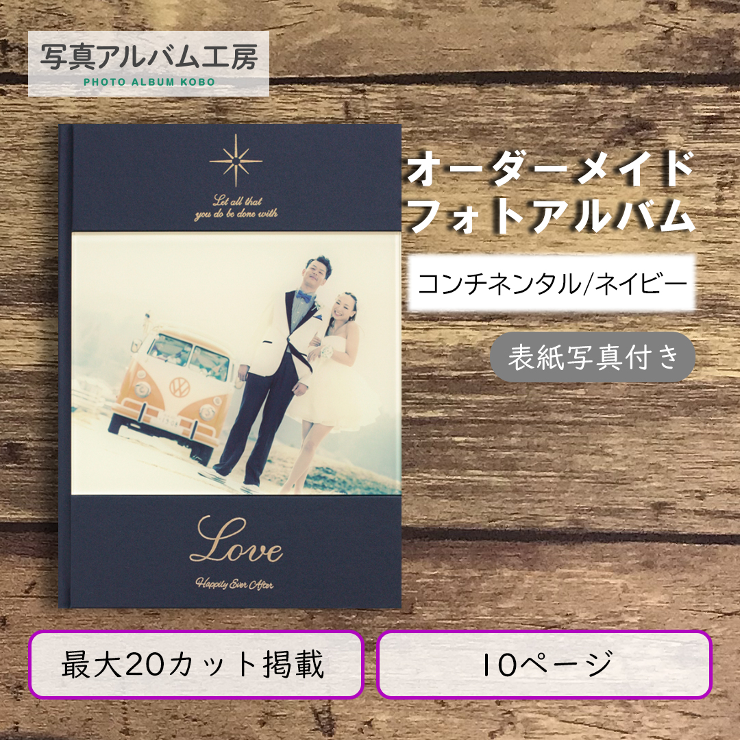 結婚式アルバム 10ページ/写真20枚まで掲載[A4縦サイズ] プロに作成依頼で手間いらず【コンチネンタル/ネイビー】 ZAL20/10p-20c 前撮り・フォト婚写真
