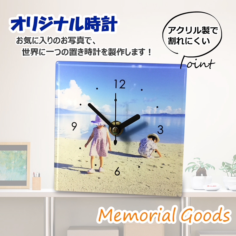 時計付きアクリルフォトフレーム 【S/120×120】 写真立て プリント込 写真を送るだけ! Z18